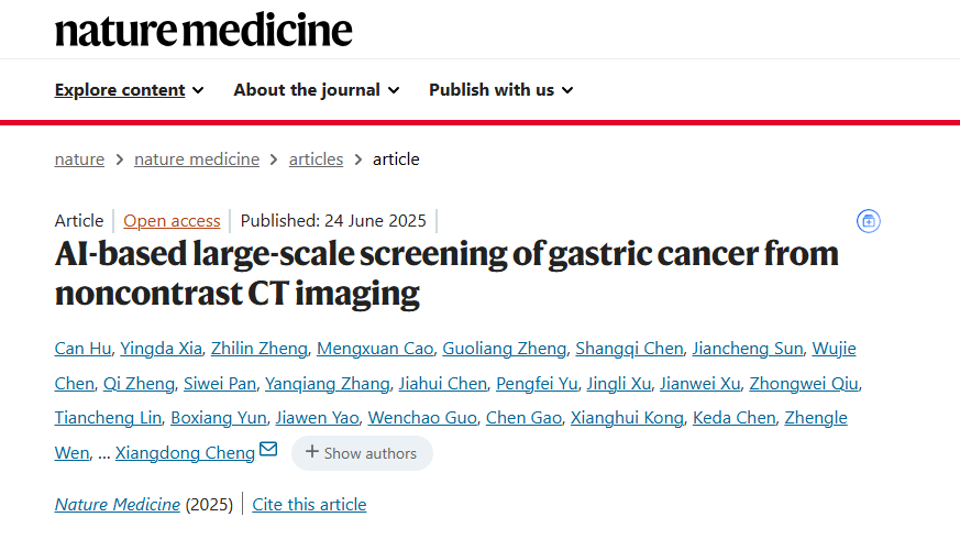 全球首个利用平扫CT识别胃癌的AI模型于近日登上《自然·医学》。数据显示,该模型的敏感性和特异性分别达到85.1%和96.8%。